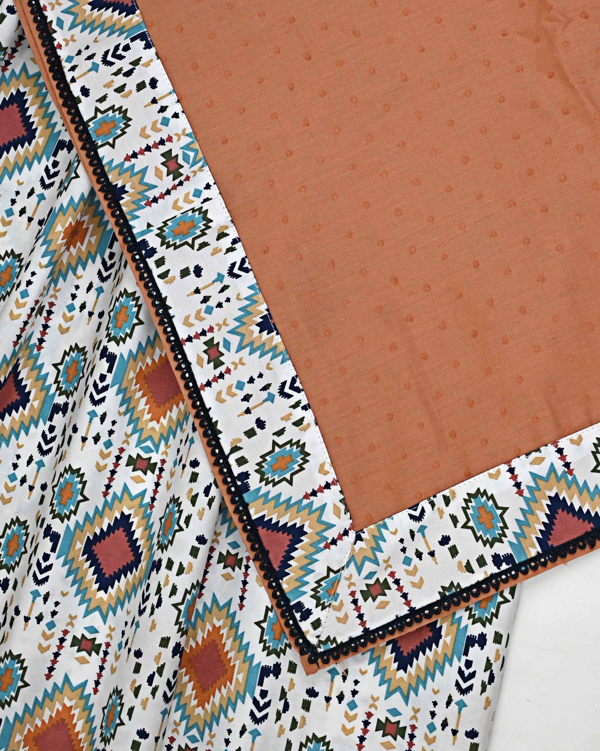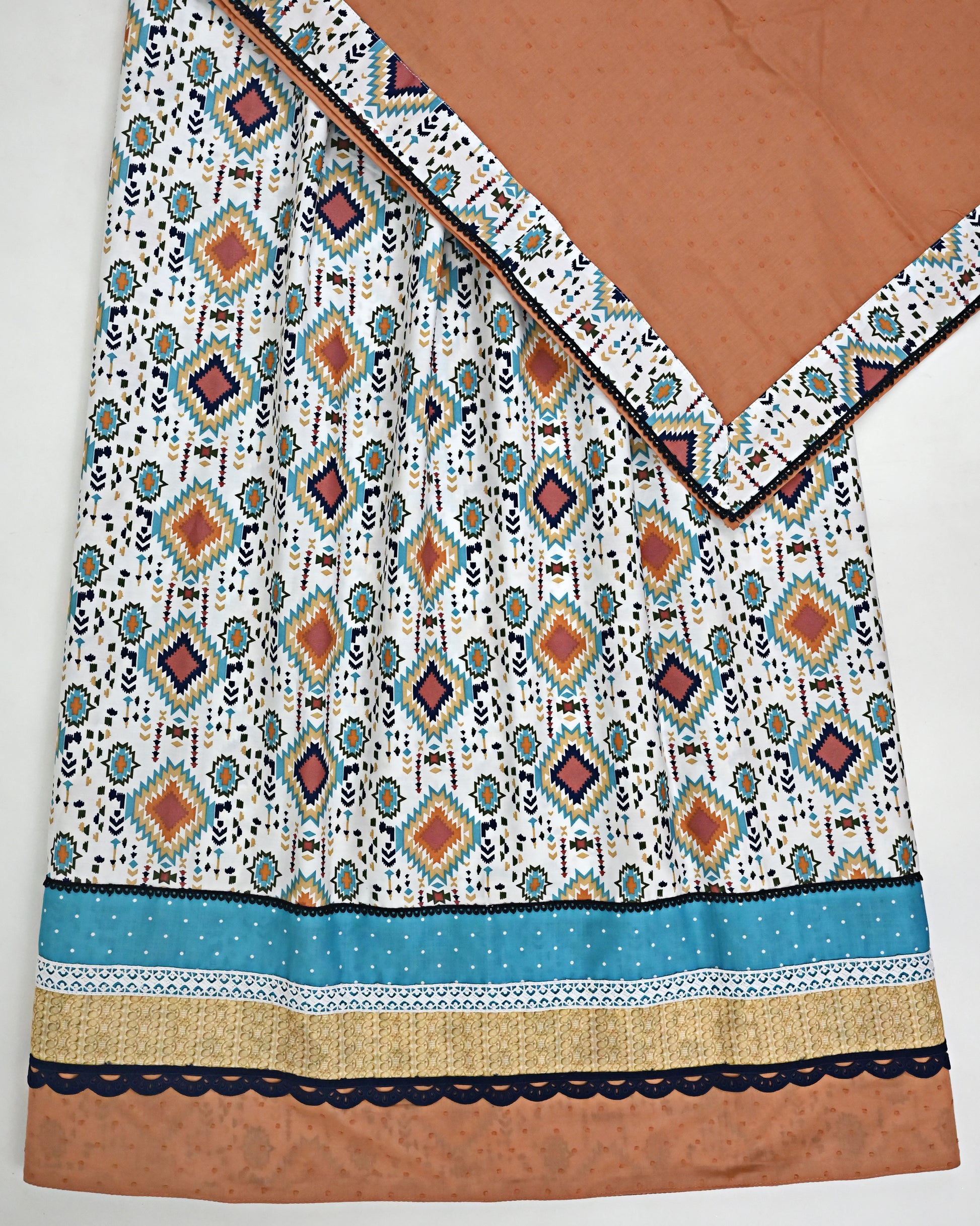Smart Printed Jodi With Colorful Panel Smart Lace & Plain Orange Dupatta