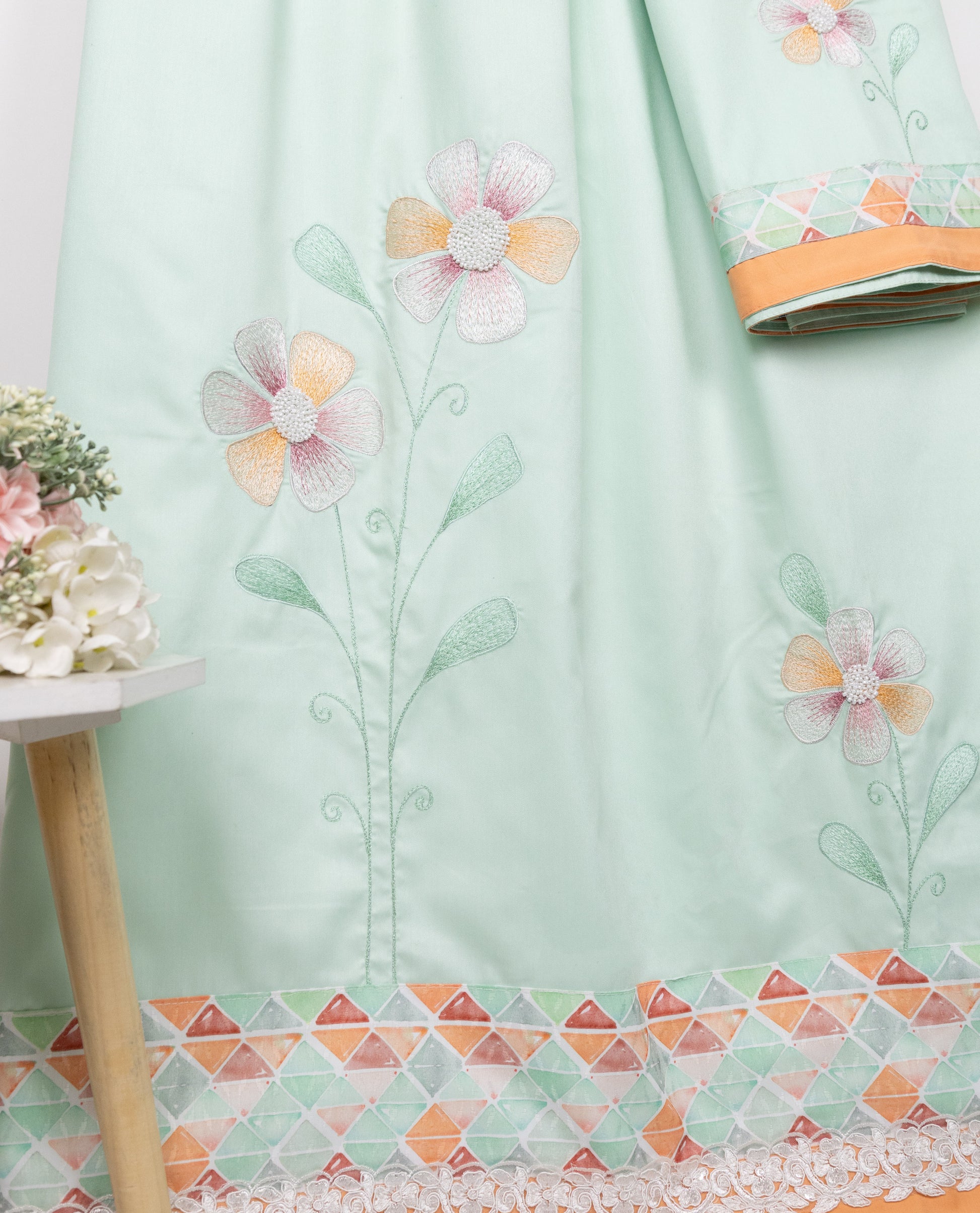 Mint Green With Smart Design Panel & Smart Floral Embroidery Work