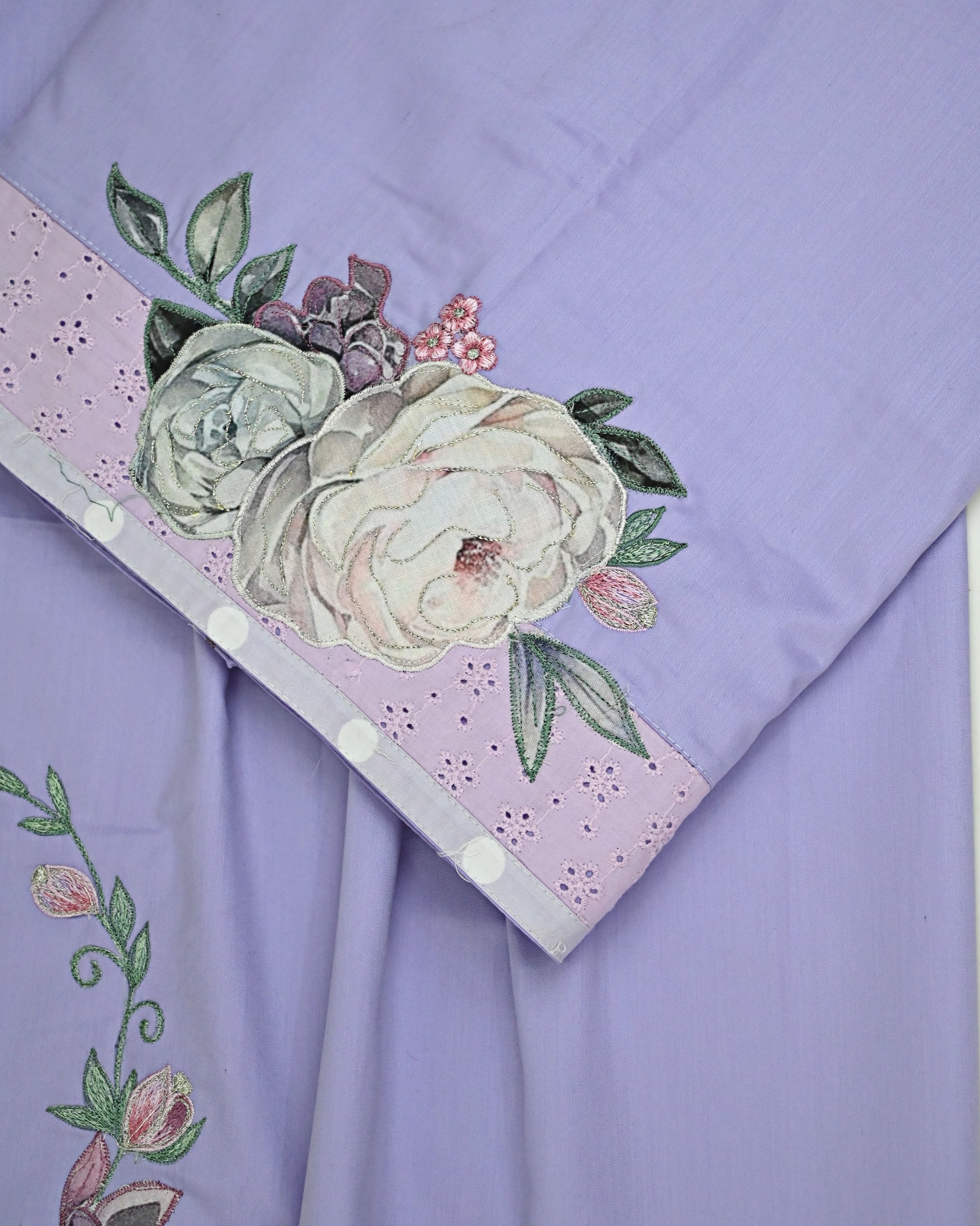 Lilac Rida With Smart Box Pattern & Floral Applique Work Floral Lace