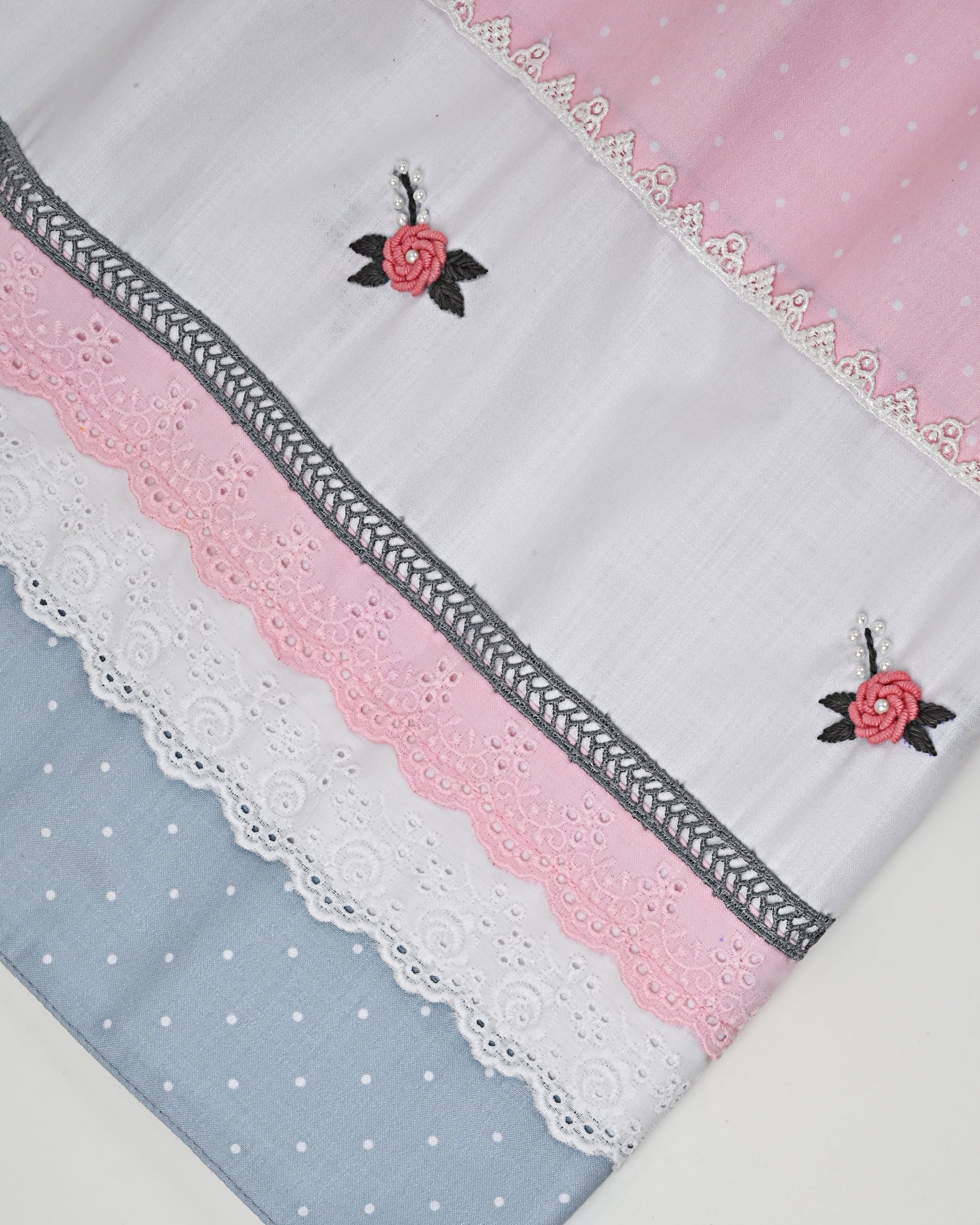 White Rida With Baby Pink Panel Smart Lace & Floral Applique Work