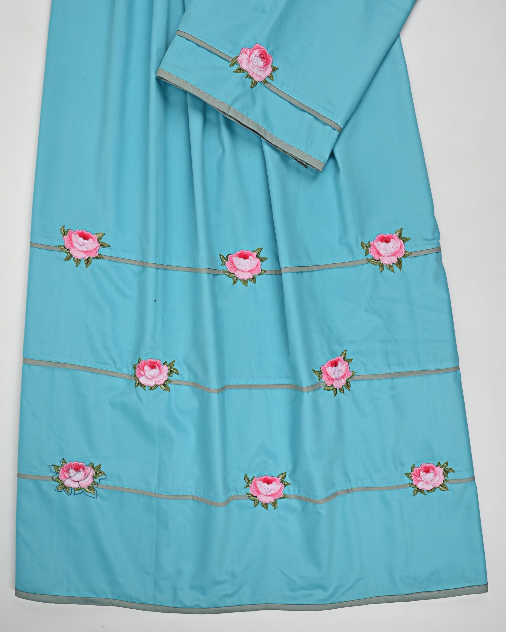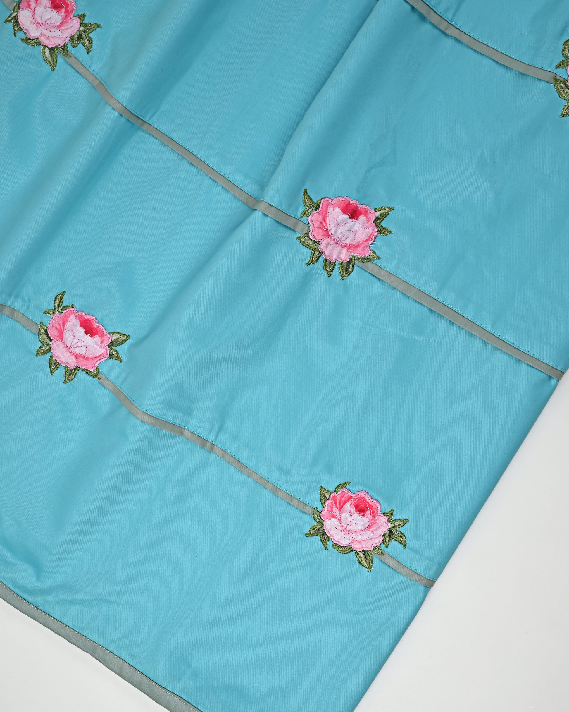 Teal Blue Rida With Smart Pipin Pattern & Rose Applique On Pipin