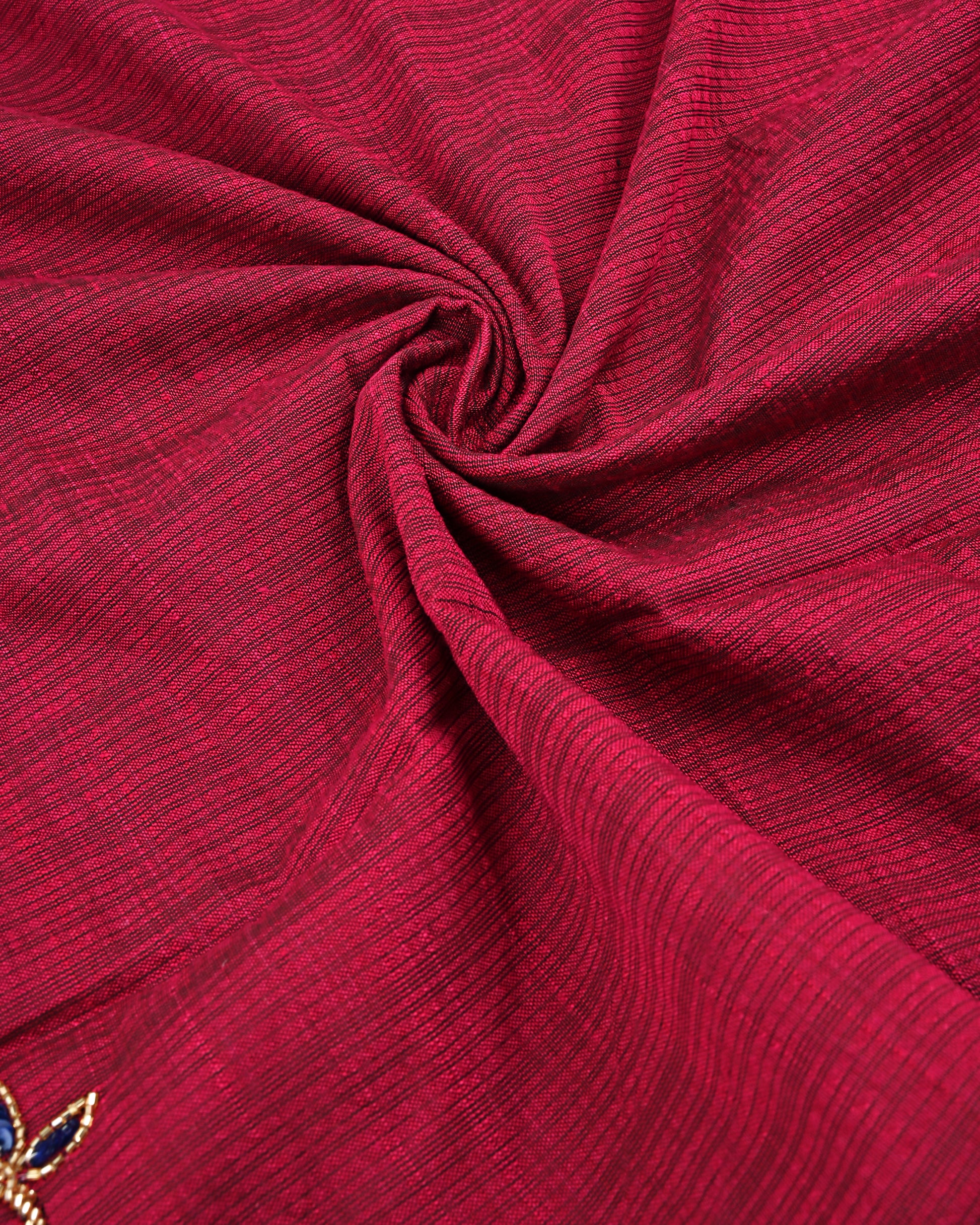 Maroon Rida With Aari Work Border & Floral Heavy Lace Dark Panel