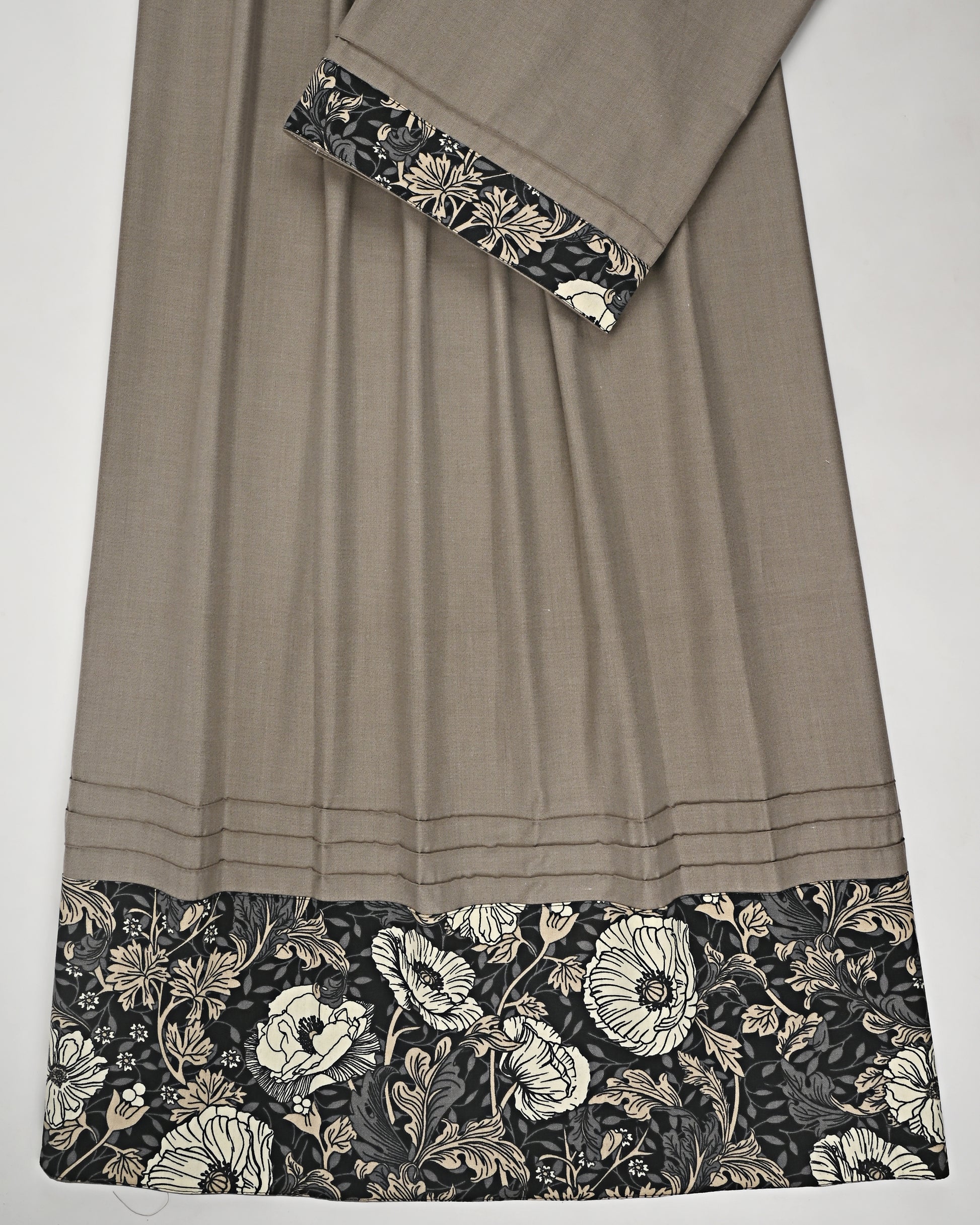 Khaki Brown Rida With Smart Pintex & Floral Panel