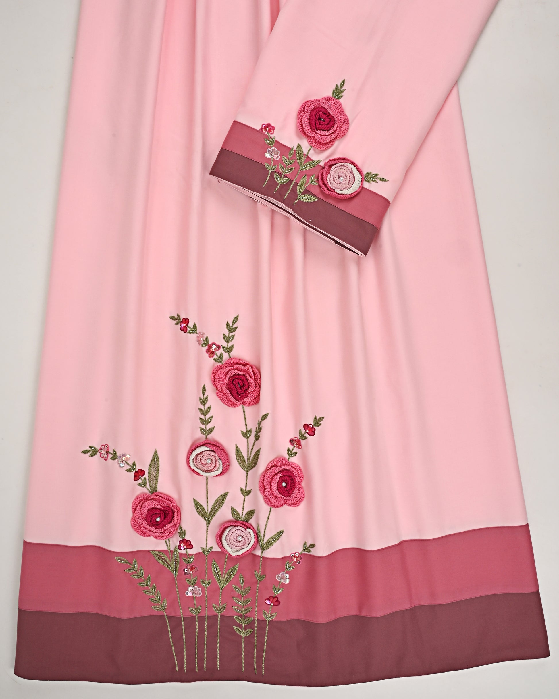 Misty Rose Pink Rida With Smart Dark Panel & Floral Handwork