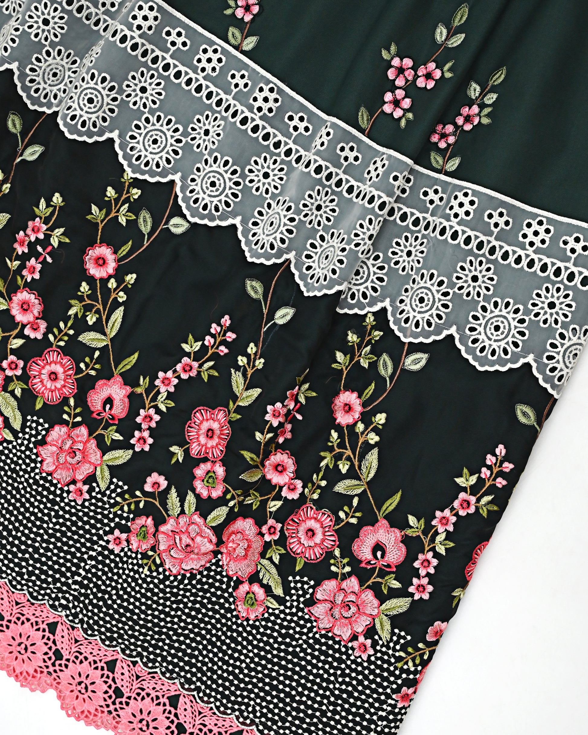 Dark Green Rida With Smart Floral Lacing & Smart Floral Embroidery Work