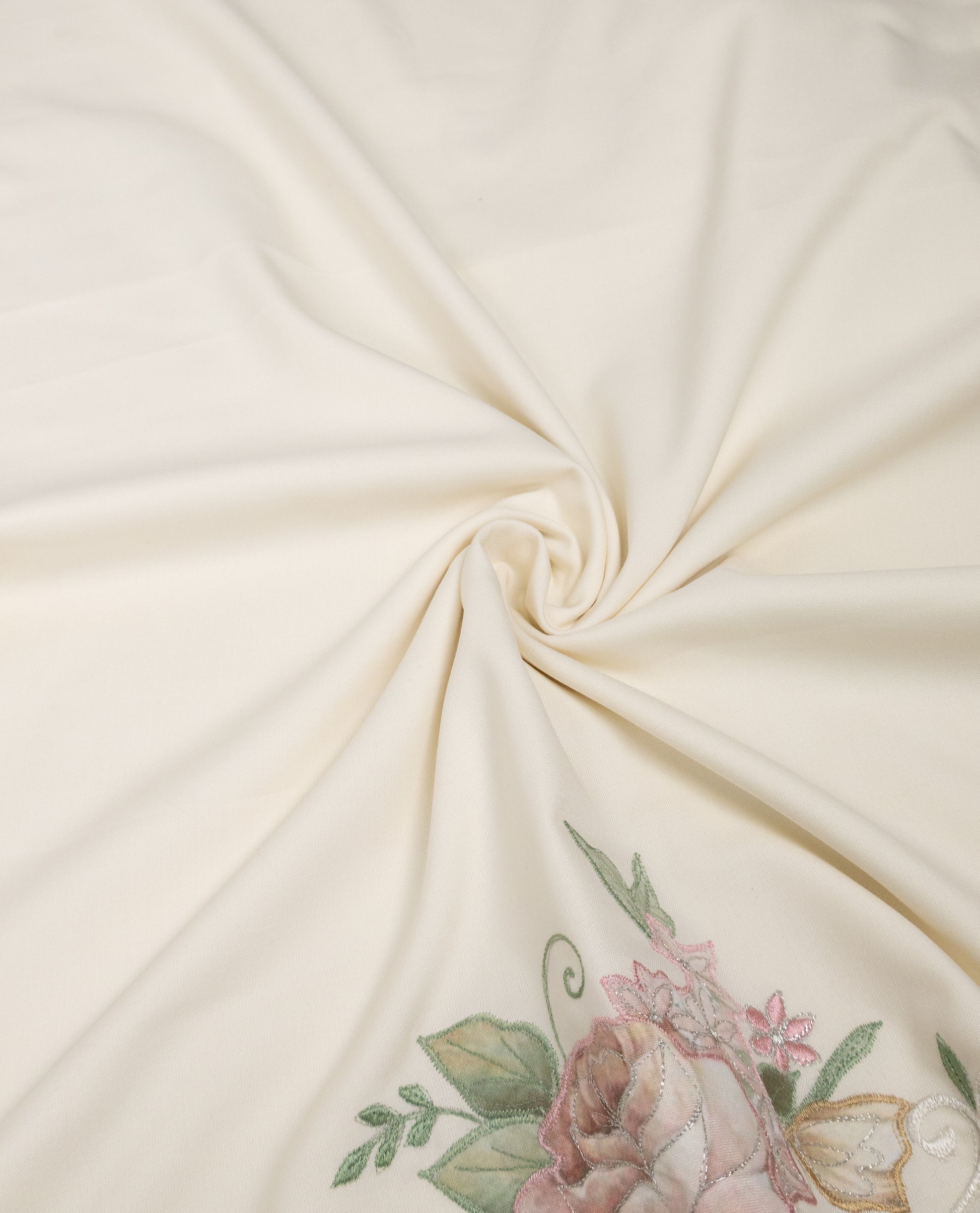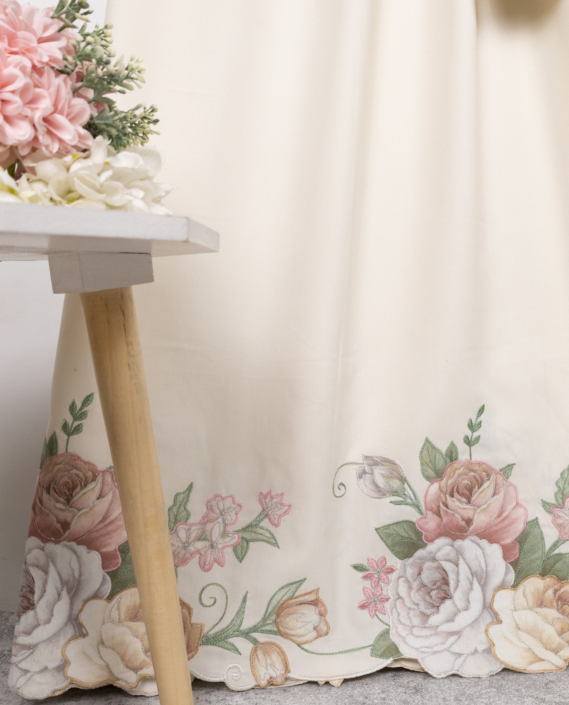 Cream Rida With Smart Floral Applique Flowers & Embroidery Work-