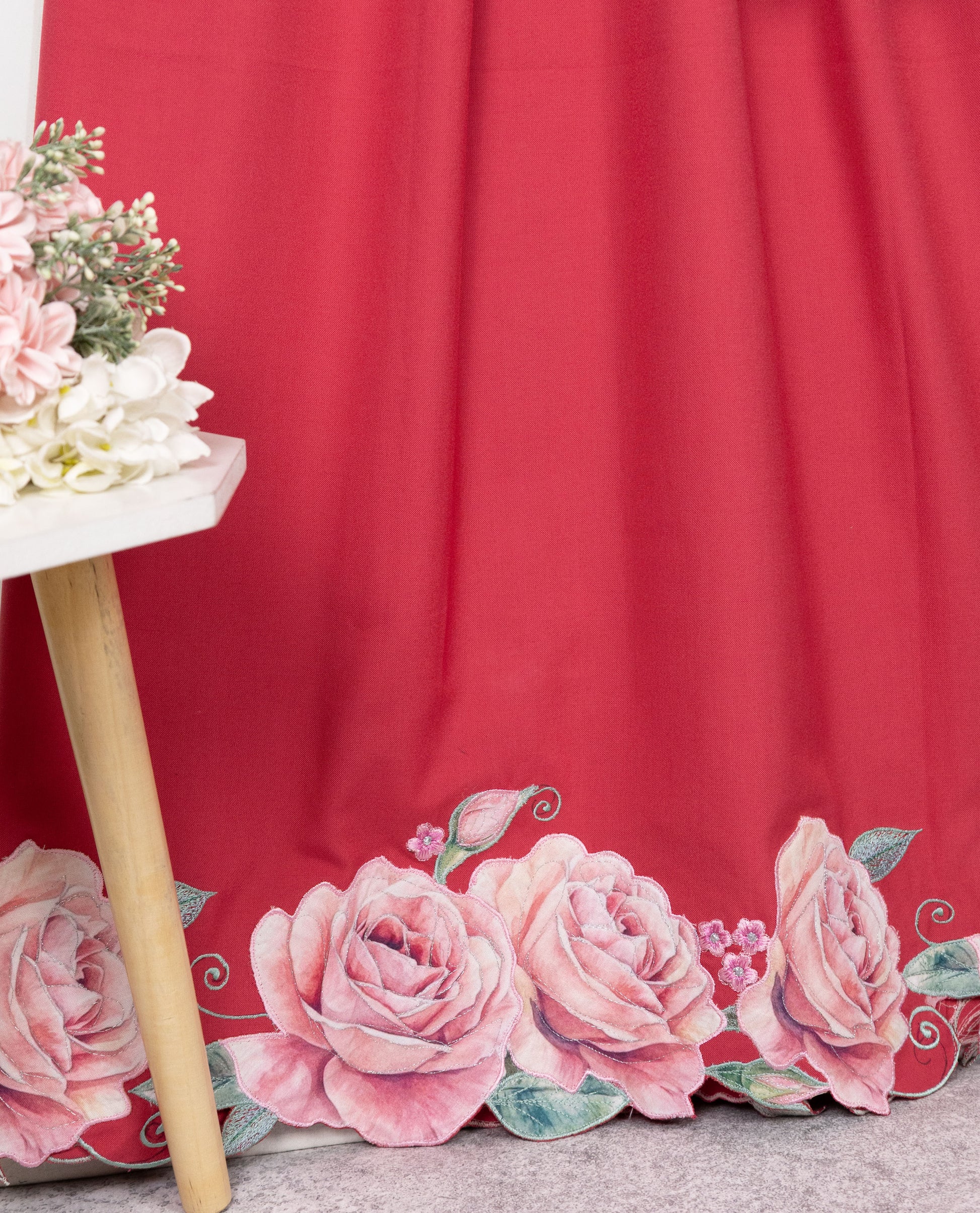 Berry Red Rida With Pink Rose Applique Work & Smart Embroidery Work-