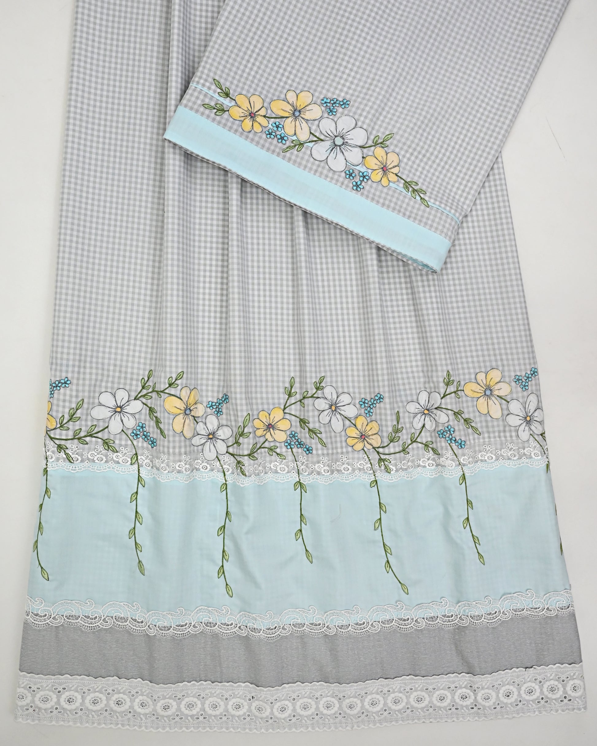 White Grey Checks Rida With Smart Lace & Floral Embroidery Work