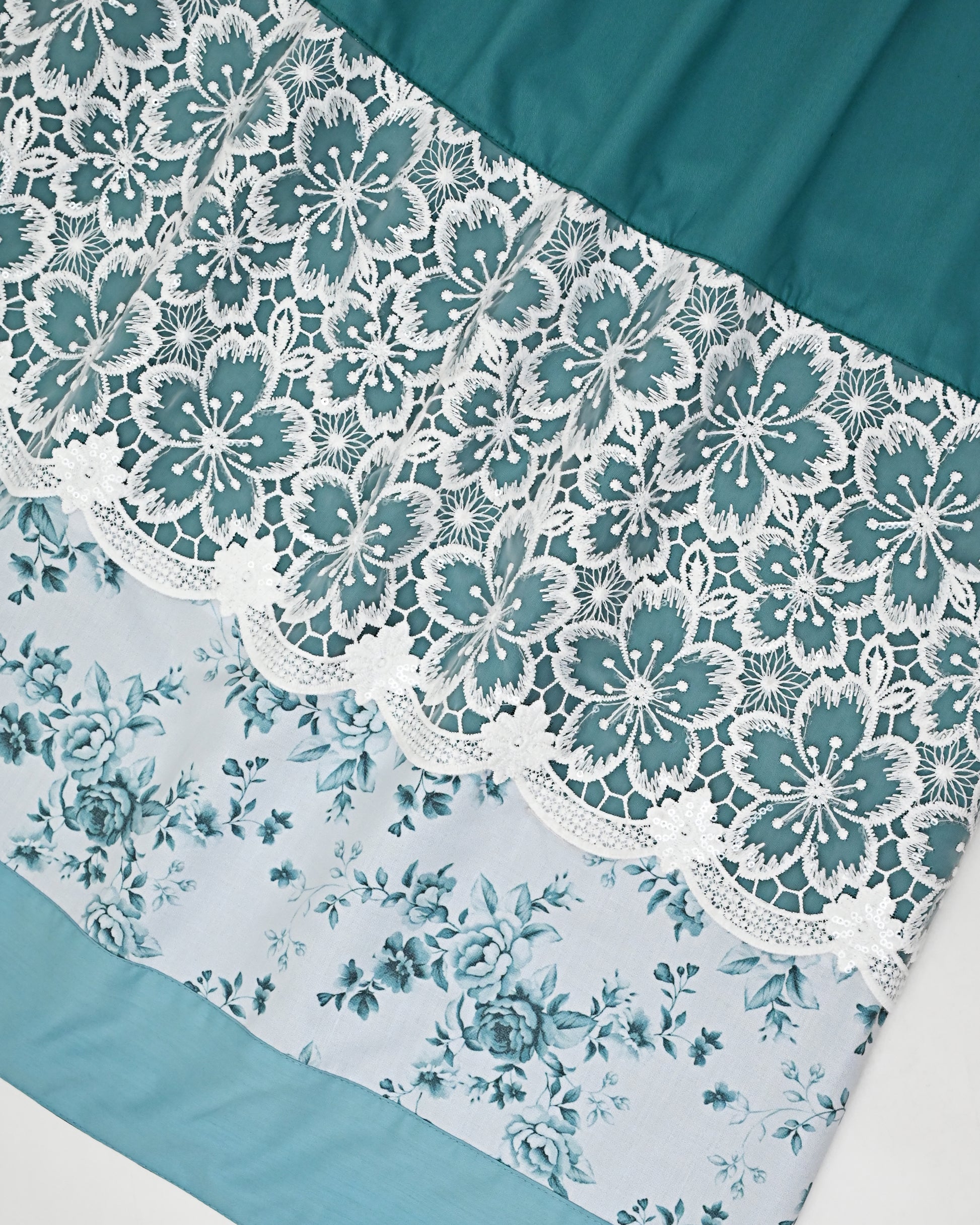 Peacock Green Rida With Smart White Floral Lace & Floral Printed Panel