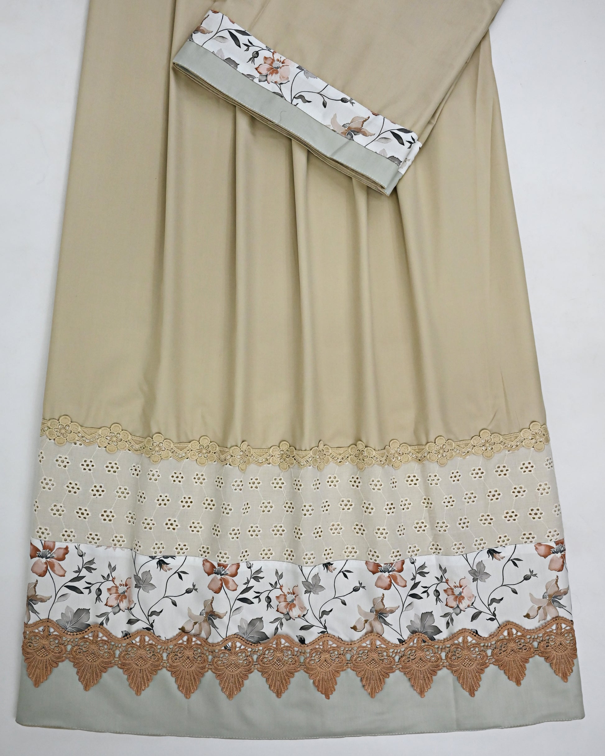 Beige Rida With Smart Floral Panel & Smart Design Lace Hakoba Lace
