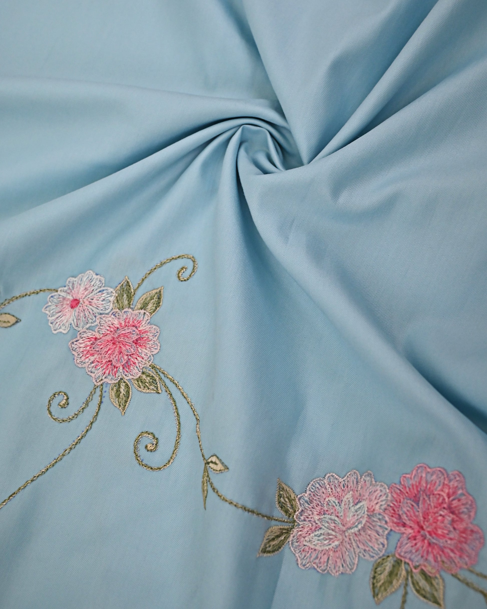 Sky Blue Rida With Smart Floral Panel & Floral Embroidery Border Work