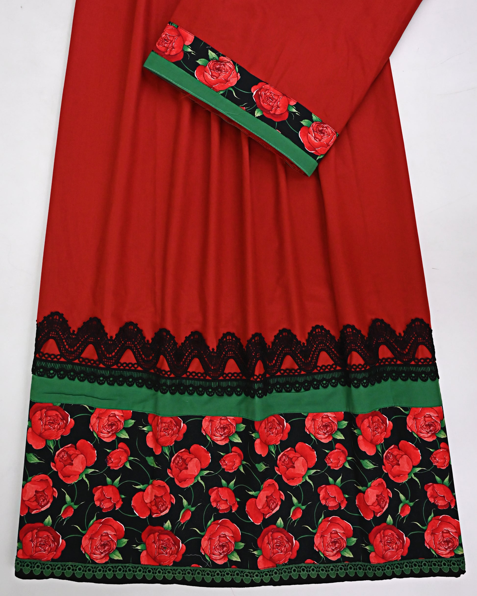 Apple Red Rida With Smart Rose Printed Panel & Smart Black Lace