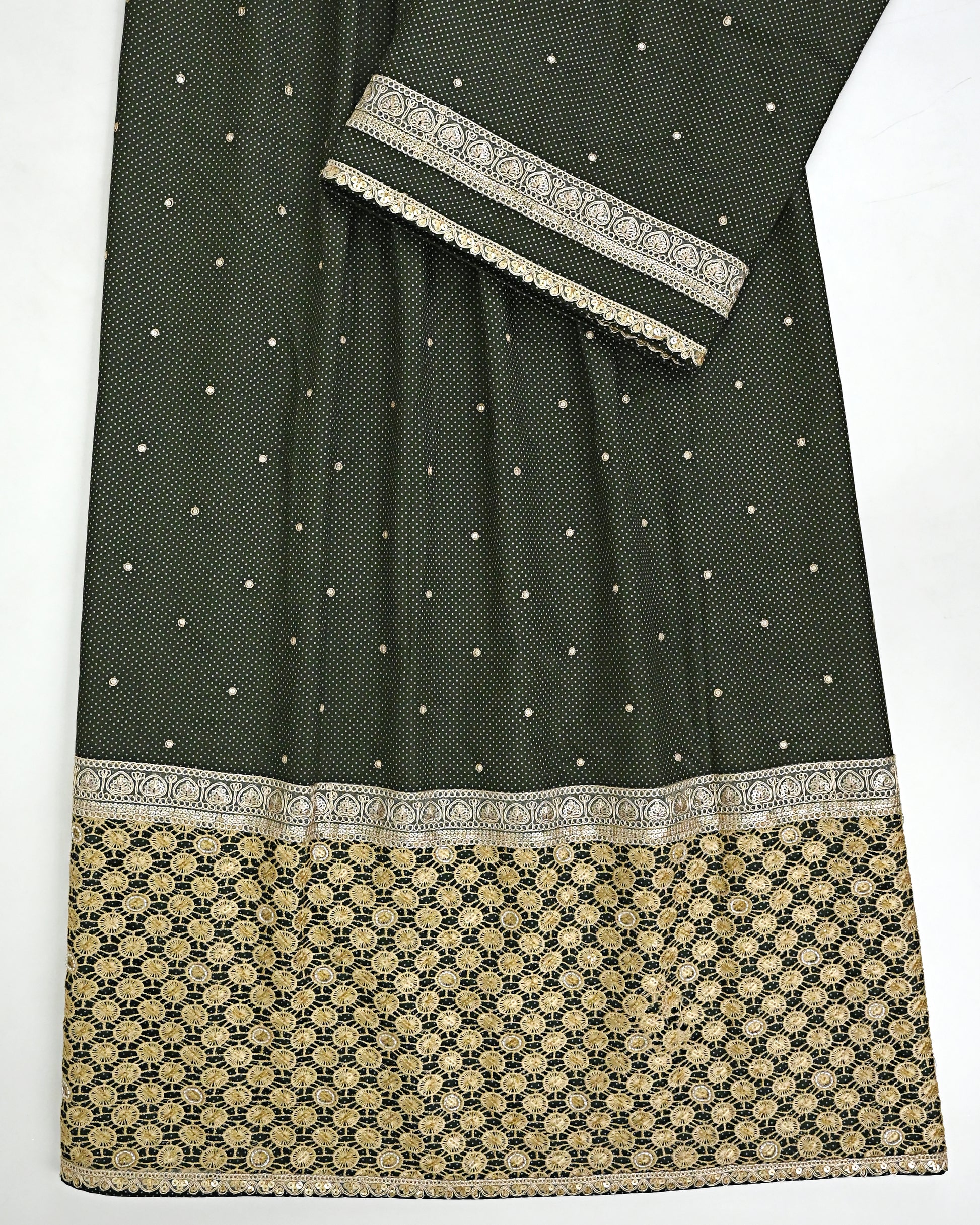 Dark Green Rida With All Over Tiki & Heavy Golden Lace & Heavy Look Panel
