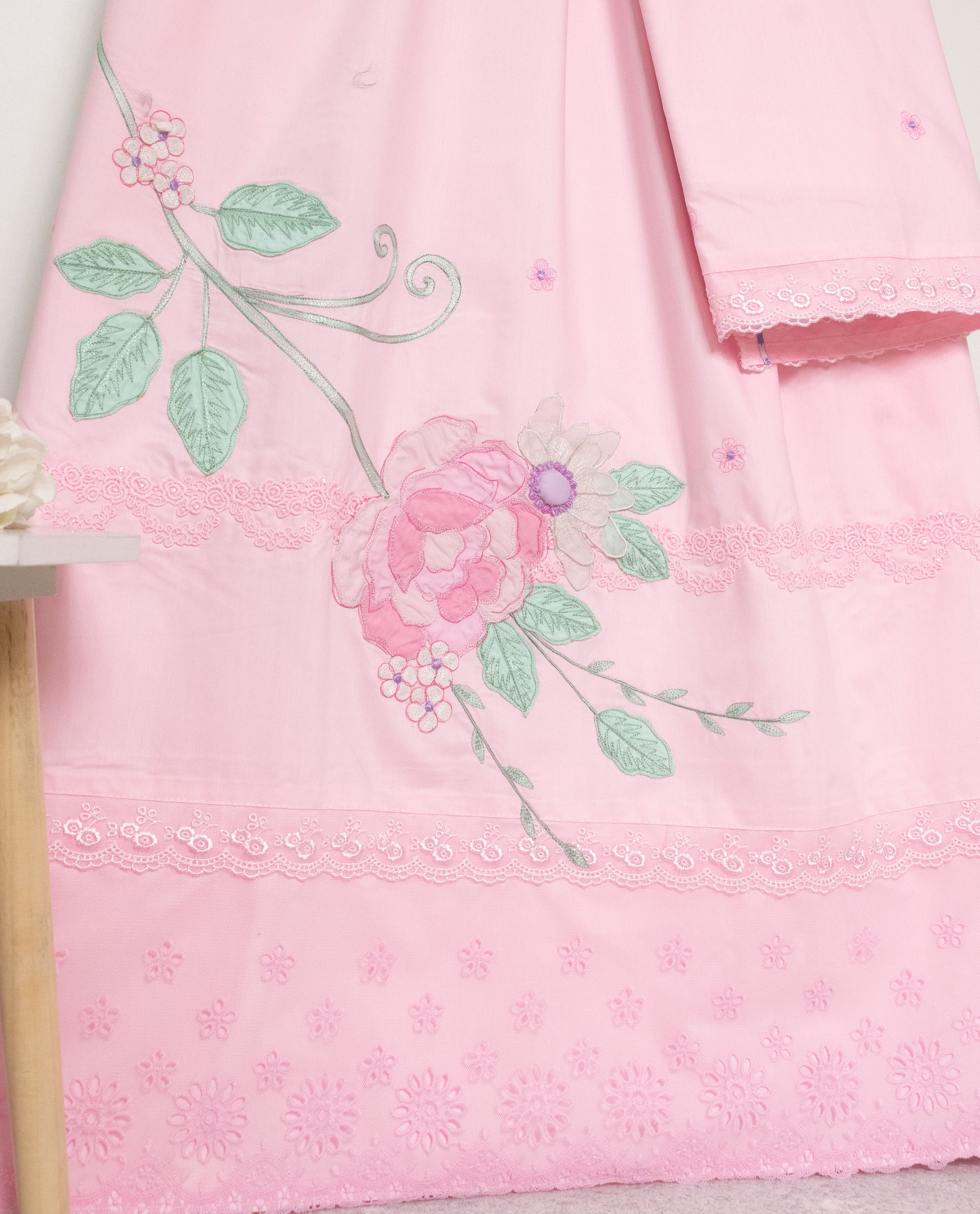 Baby Pink Rida With Smart Lacing & Floral Applique Work