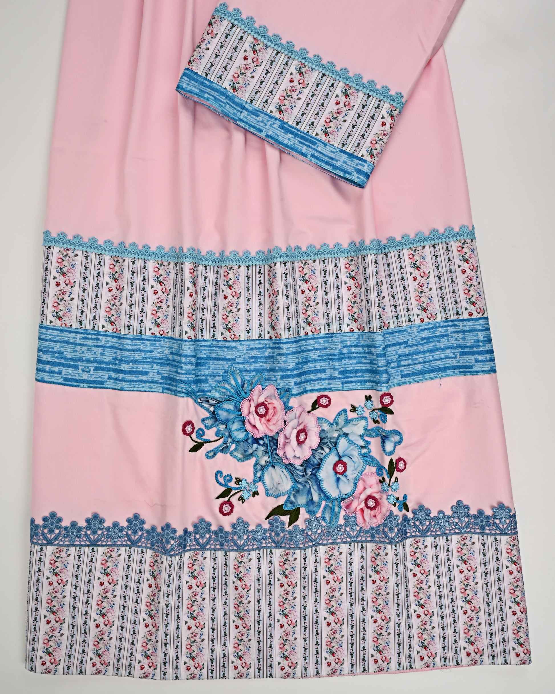Baby Pink Rida With Up Down Printed Panel & Floral Applique Bunch-2500/-