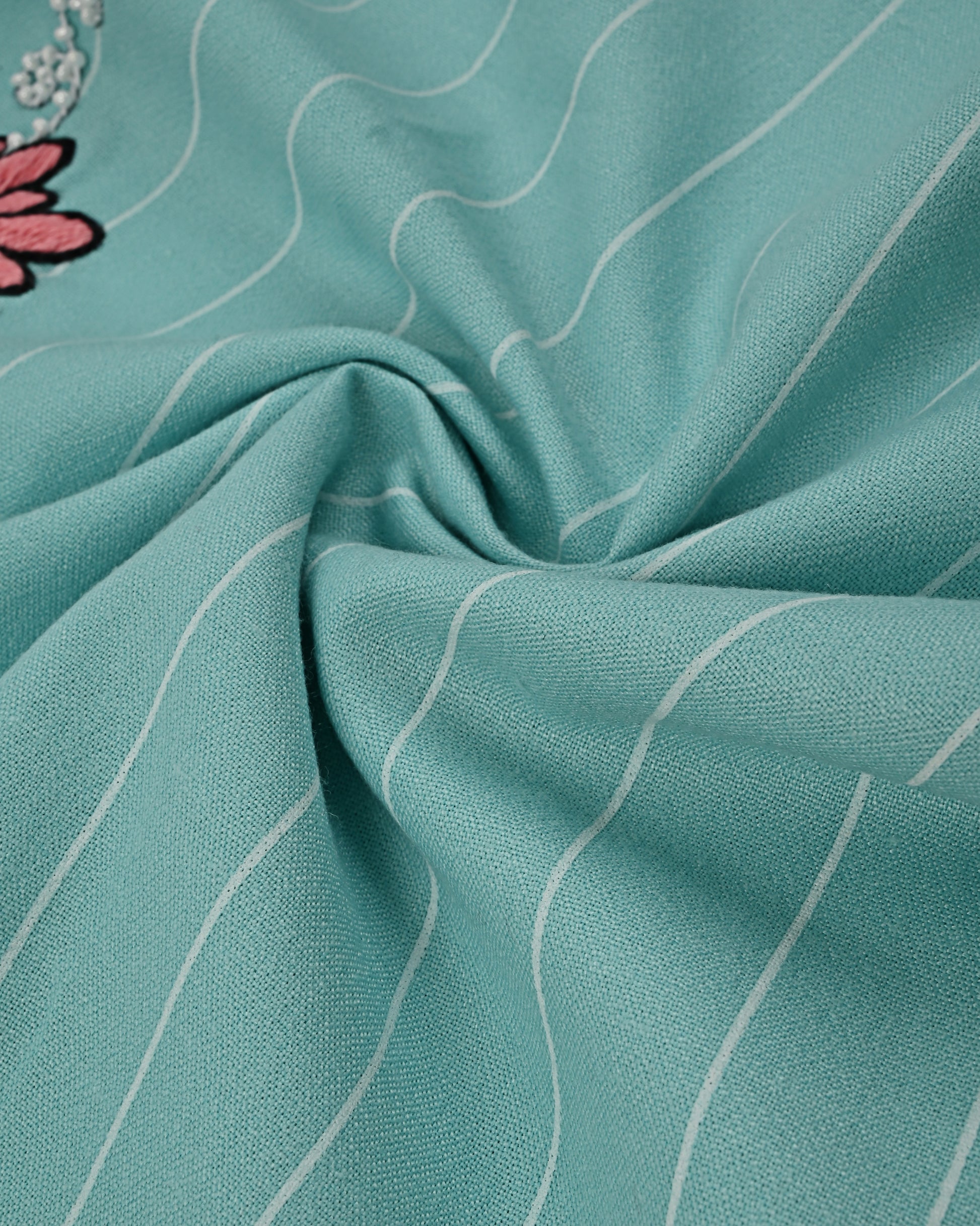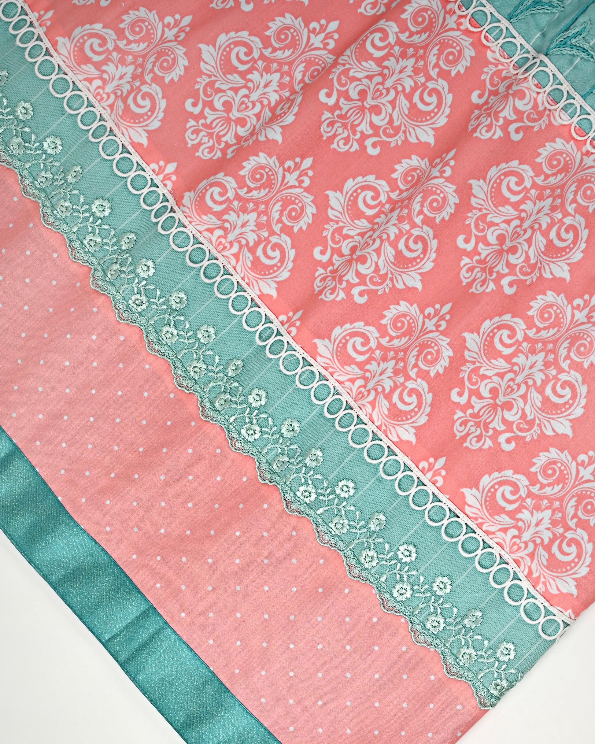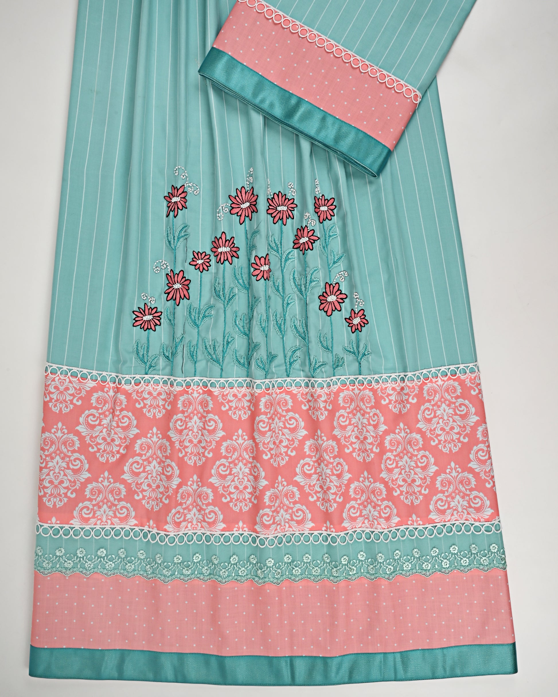 Sea Foam Green Rida With Smart Printed Panel Lace & Floral Work