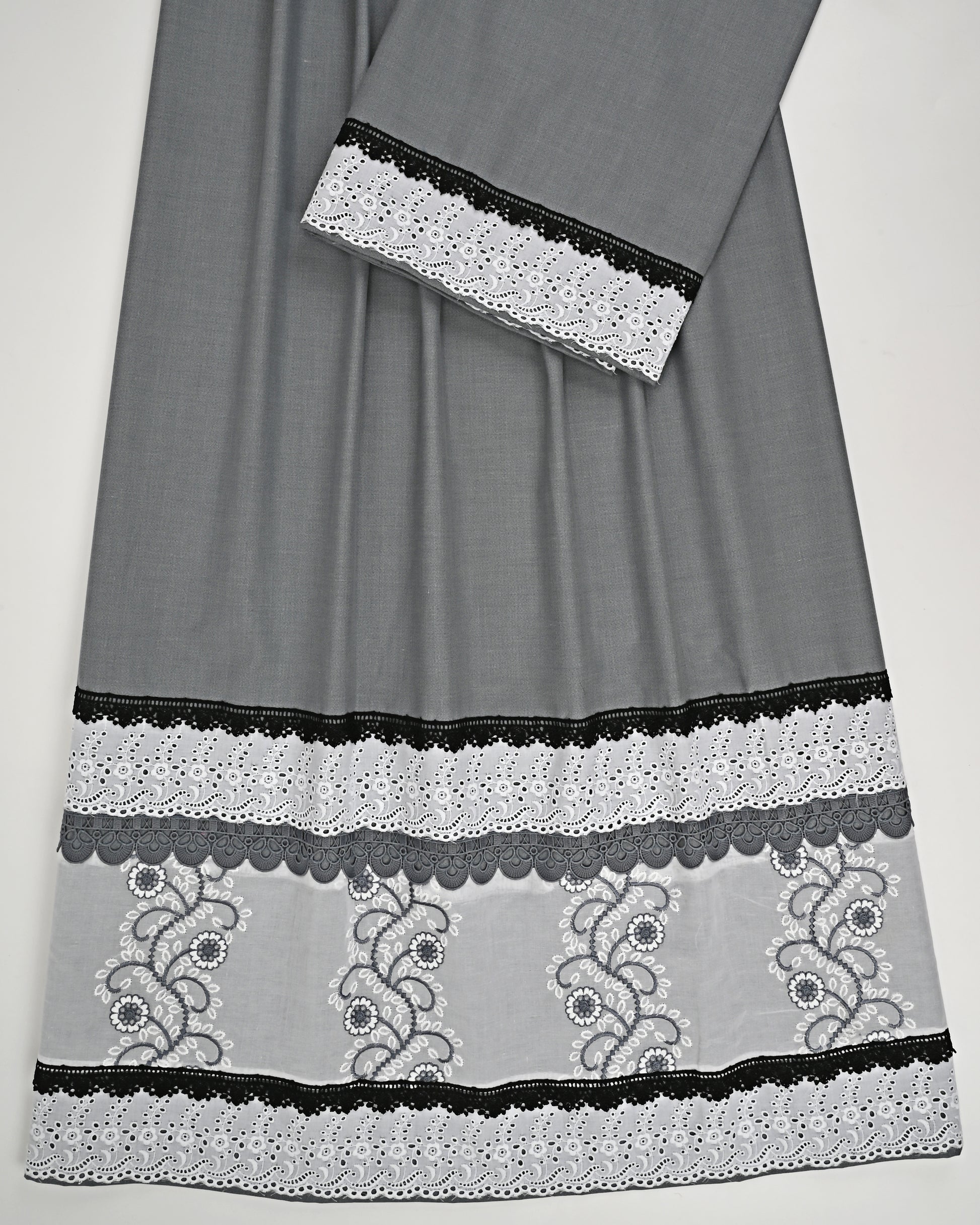 Charcoal Grey Rida With Smart White Floral Design Lace