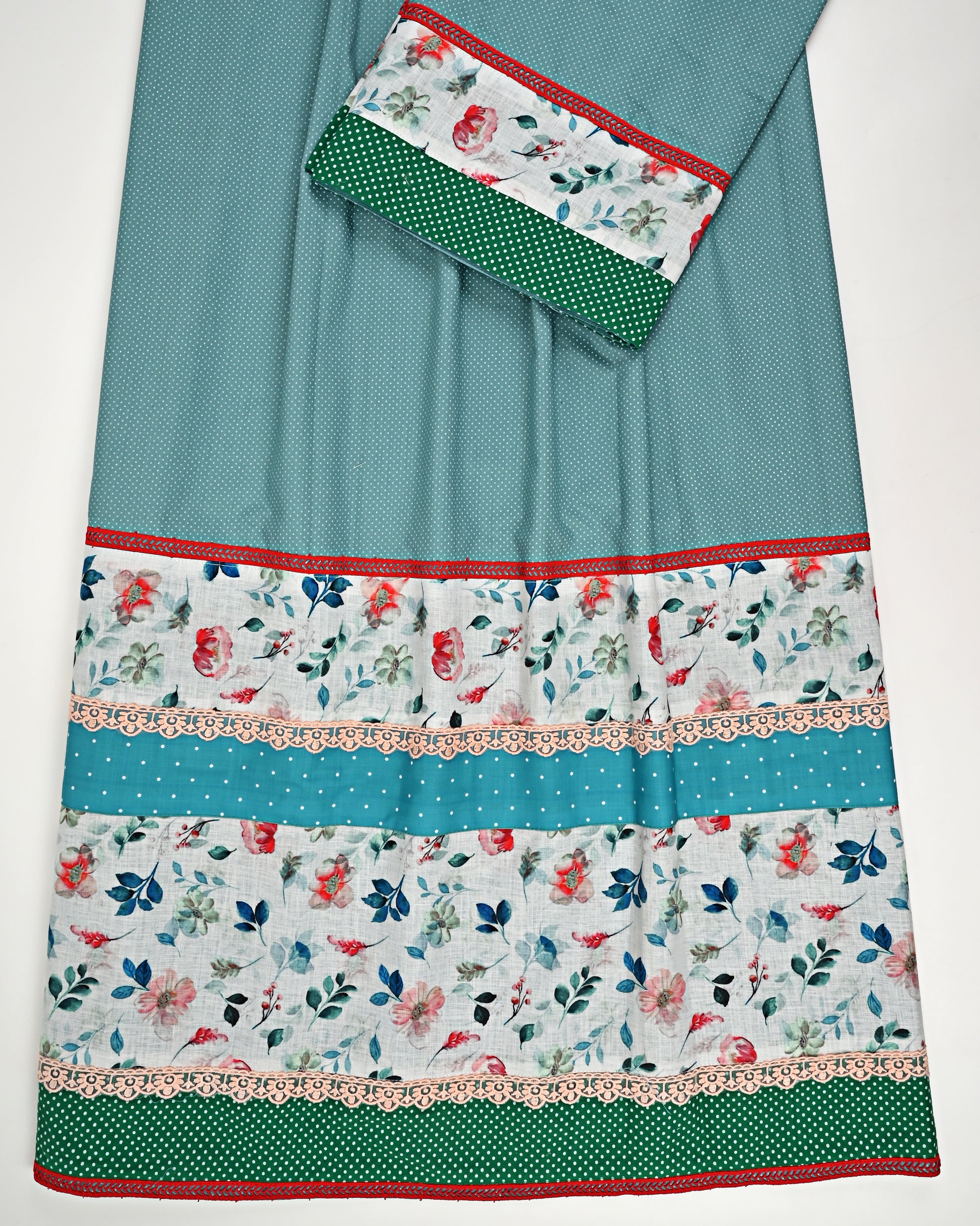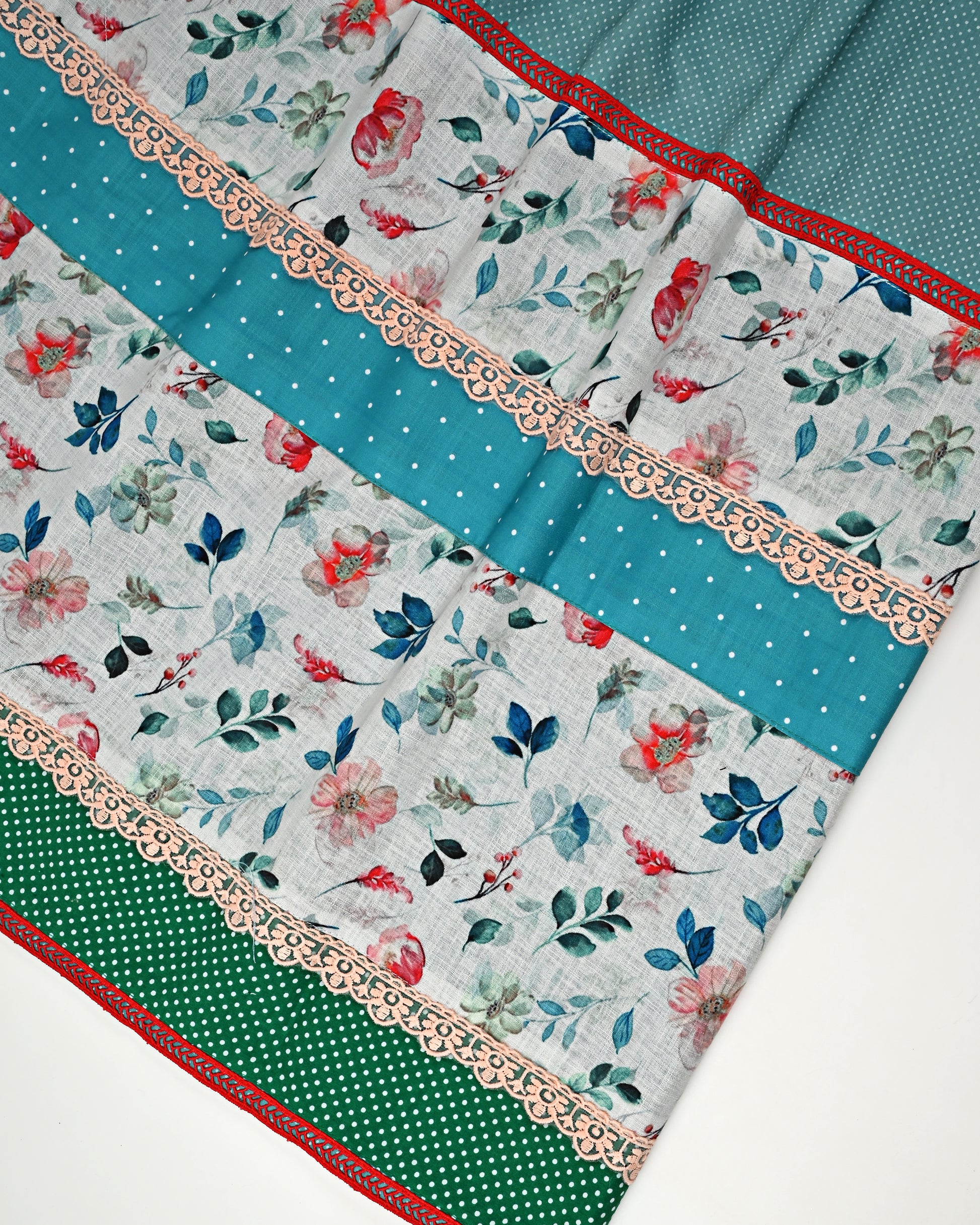 Teal White Dots Rida With Smart Floral Panel & Lace
