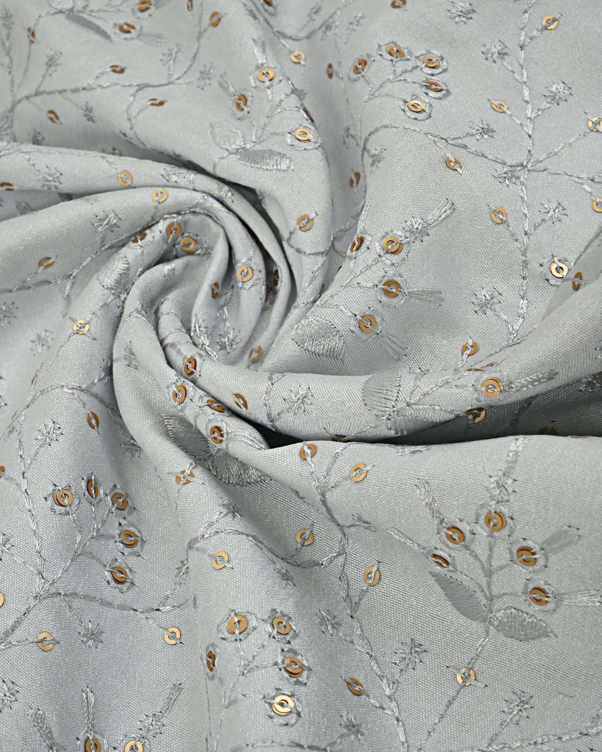 Light Grey Tikri Embroidery Rida With Smart Floral Design Lace
