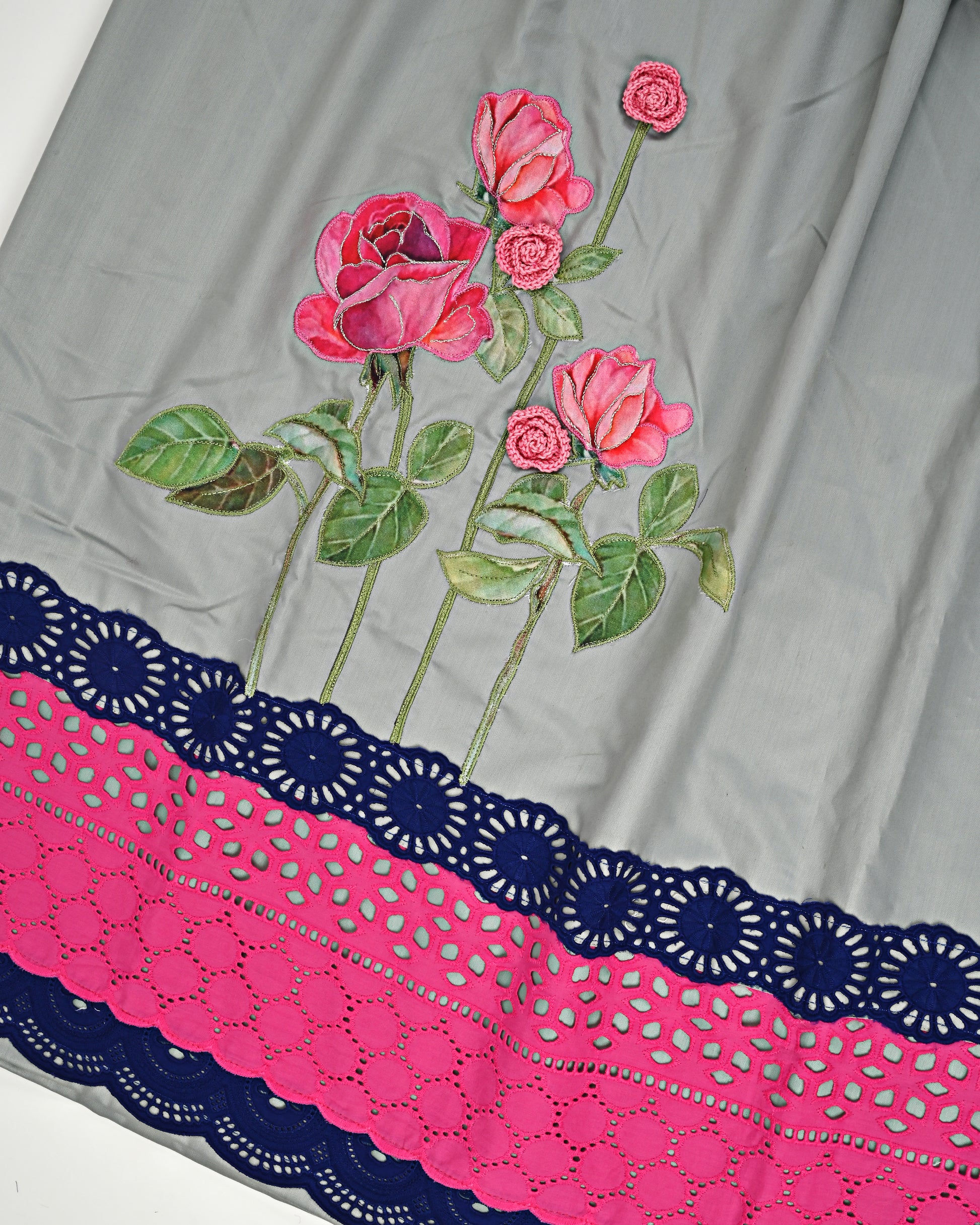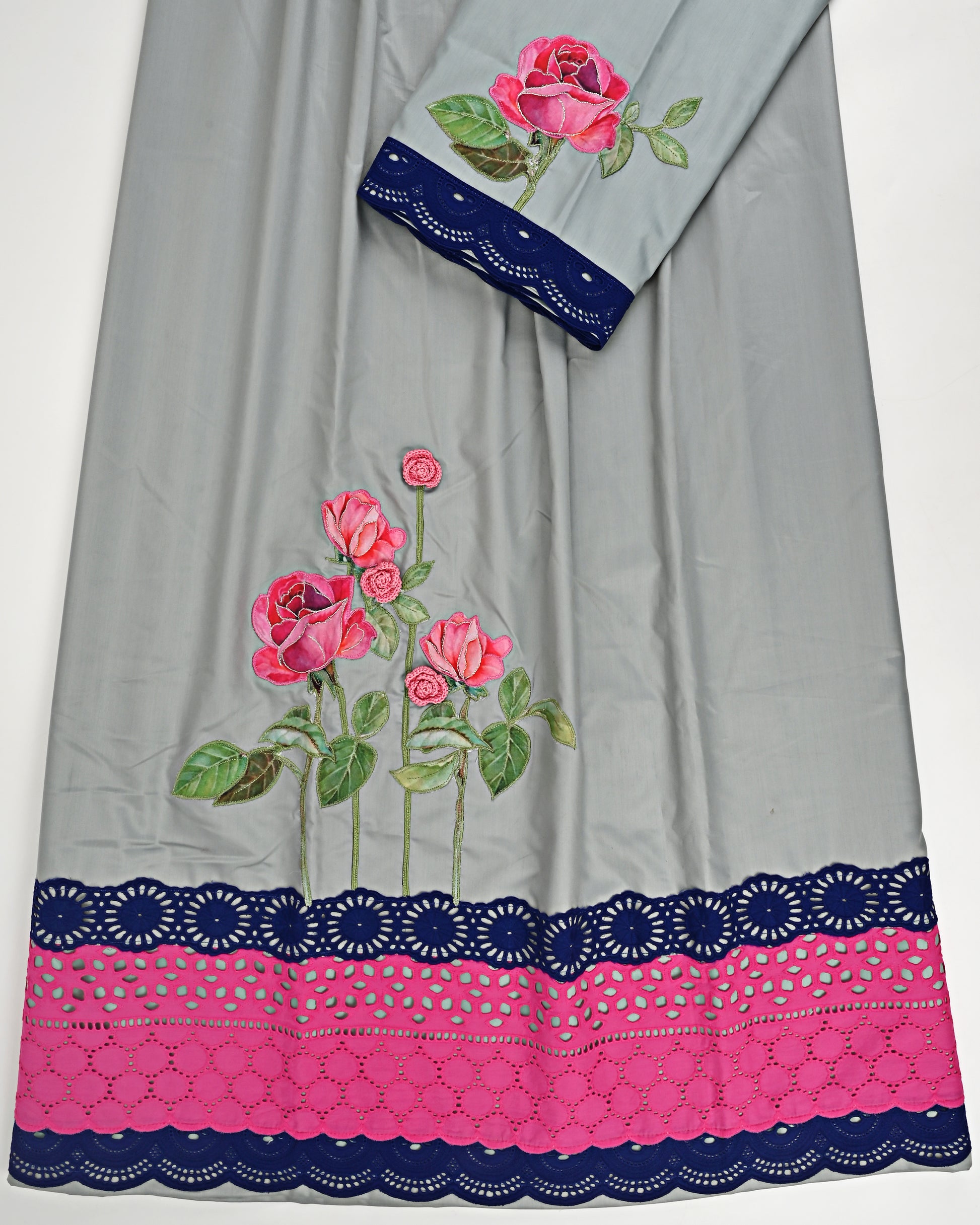 Light Grey Rida With Smart Lace & Smart Rose Applique Work