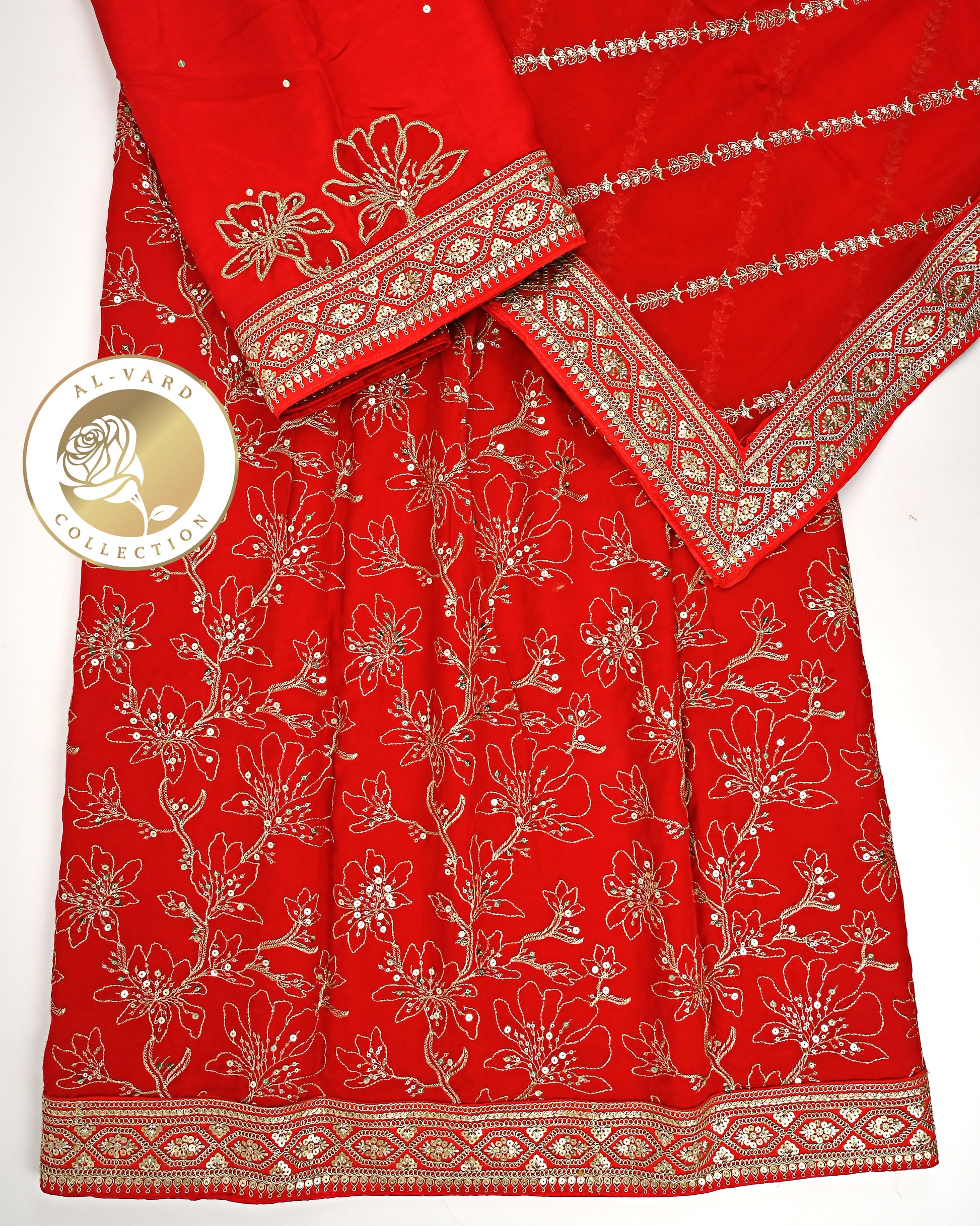 Blood Red RCJ With Full Embroidery Work & Golden Lacing