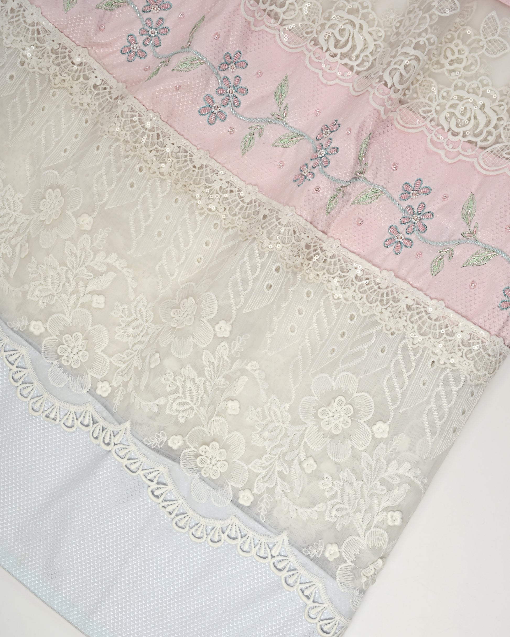 Baby Pink Rida With Smart White Lace & Floral Aari Border