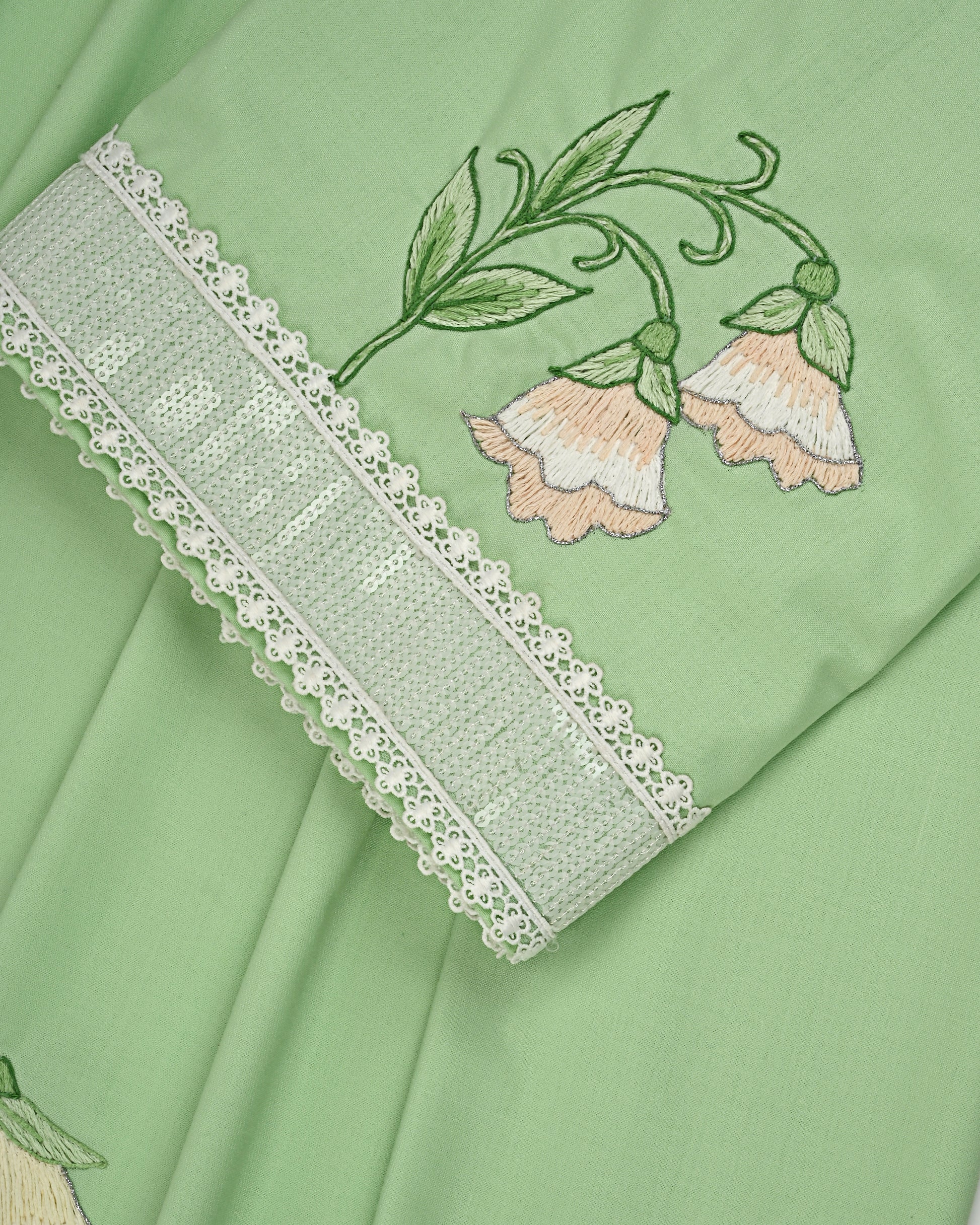 Pista Green Rida With Smart Lacing & Floral Embroidery Work
