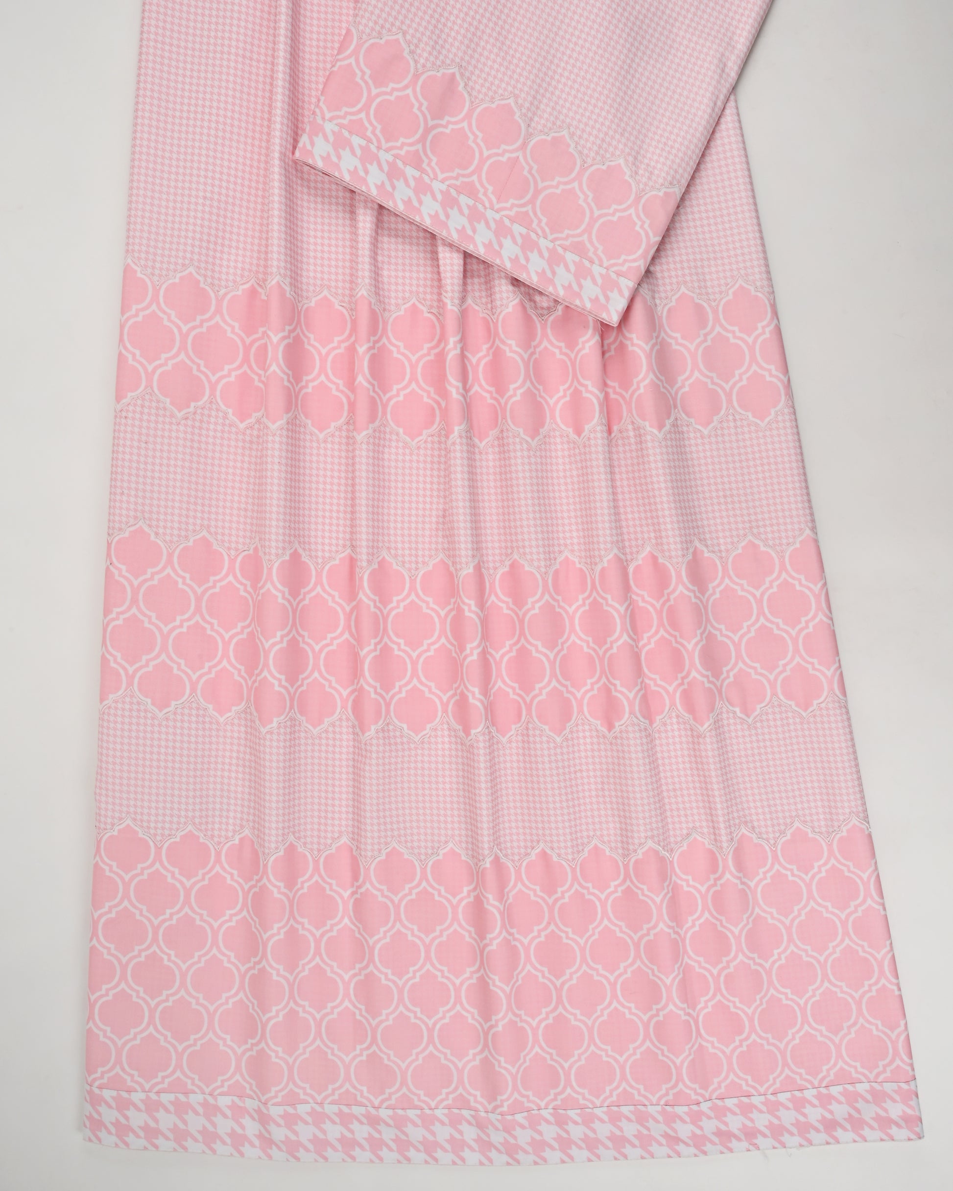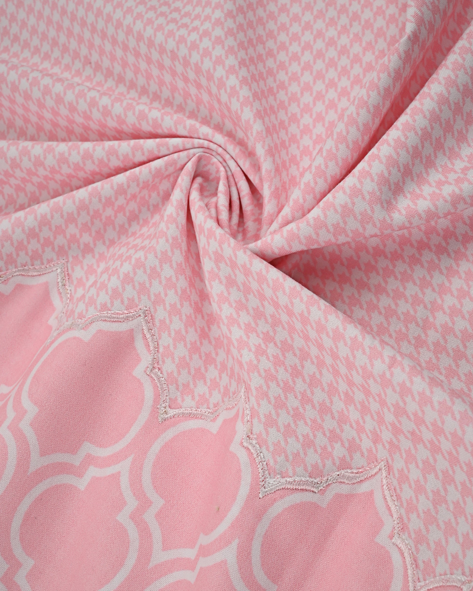 Baby Pink White Printed Rida With Smart Honeycomb Pattern & Embroidery