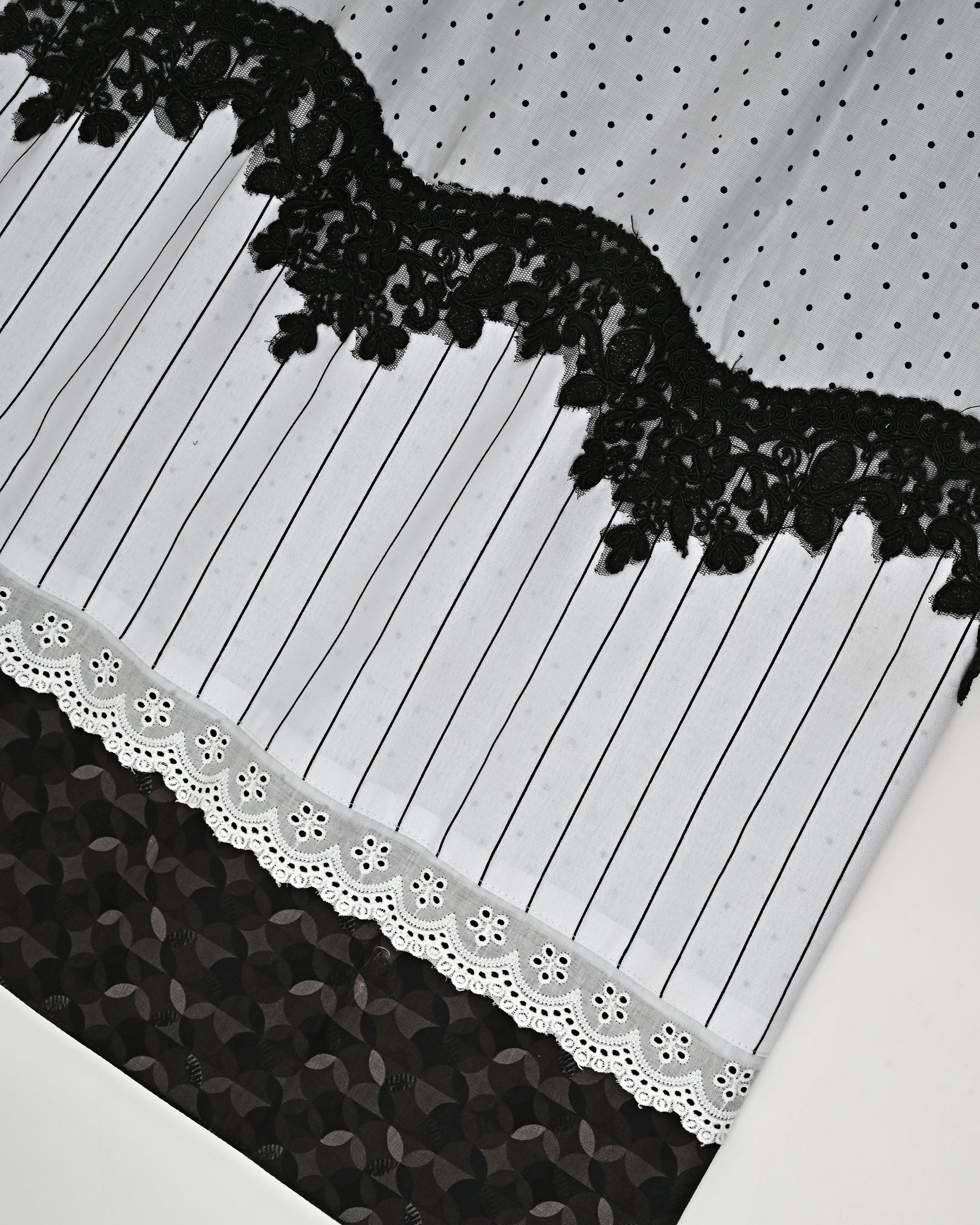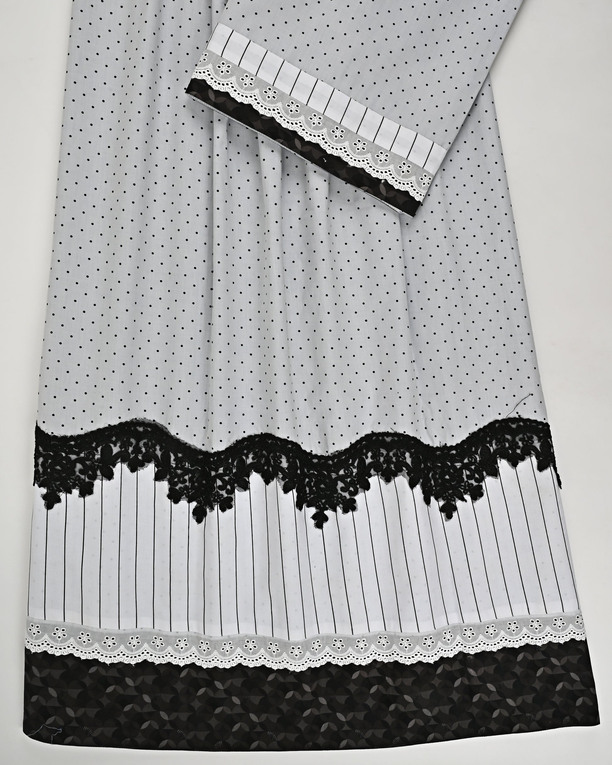 Light Grey Dots Rida With Black Lace & White Panel With Black Lining