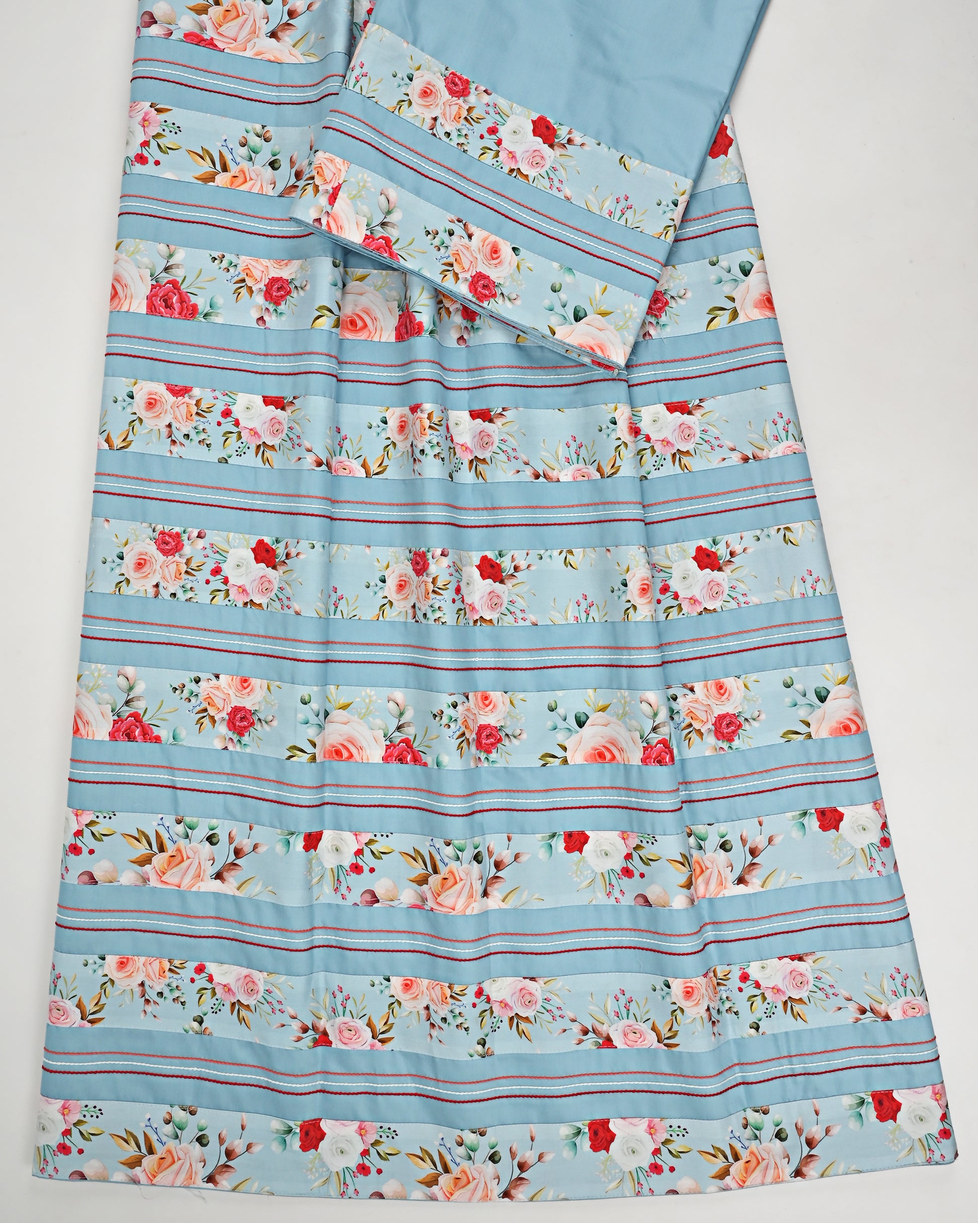 Light Blue Rida With Smart Floral Printed High Panel & Anchor Pattern